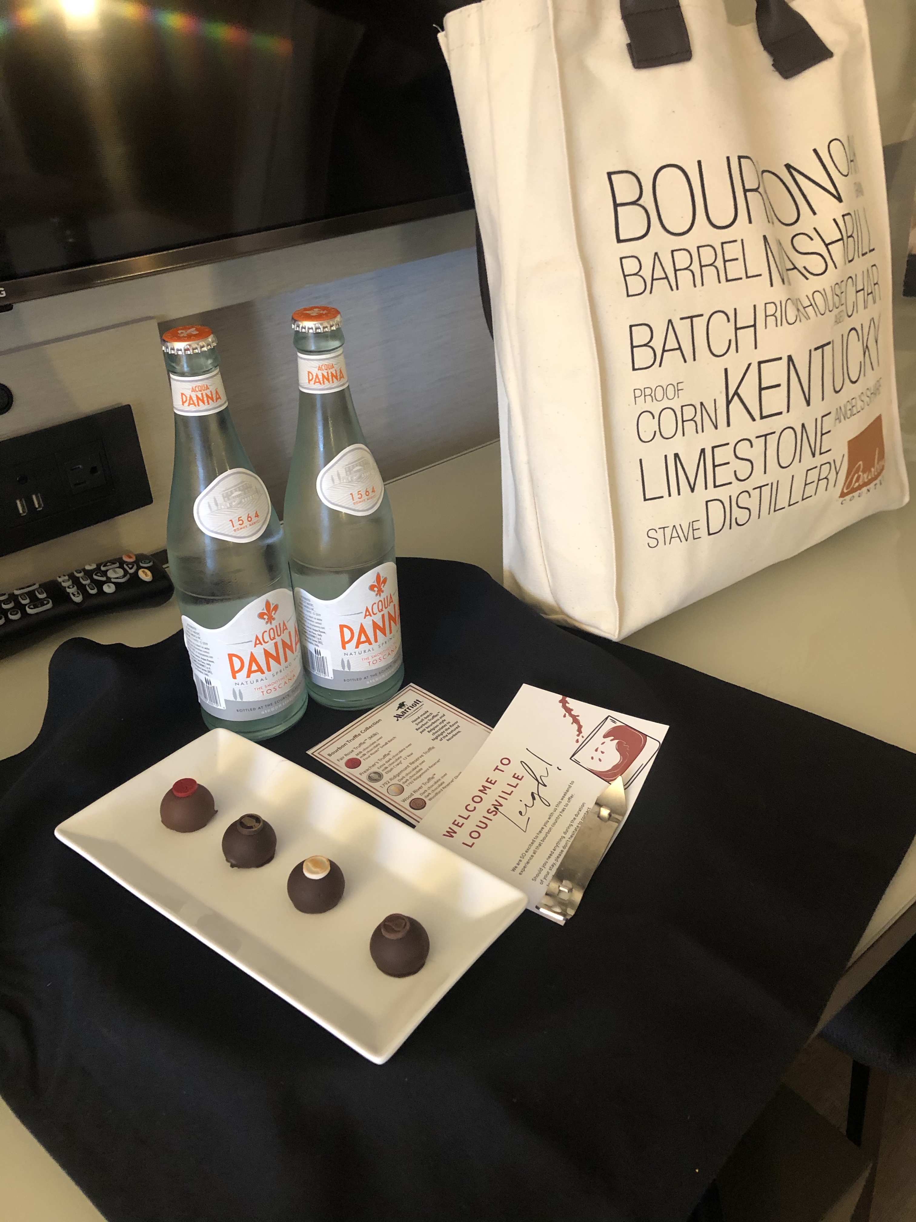 I arrived in Louisville Friday afternoon. I checked into my King Room and was greeted with a goodie bag and bourbon infused treats. If you’re not familiar, Louisville is home to the largest Bourbon distelleries in the world. Louisville is “Bourbon City”. There are 2 barrels of bourbon to every 1 Louisville resident (fun fact I learned on one of my tours). After enjoying my chocolate treats, I headed down to the restaurant for dinner.
